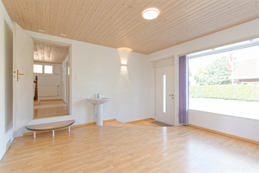Weiteren Stauraum finden Sie im Untergeschoss. Ein grosser Naturkeller gewährt viel Platz für Vorräte und eignet sich ideal für die Lagerung von Obst oder Wein. Im Technikraum sind nebst der neueren Öl-Zentralheizung (Wärmeabgabe über Radiatoren) auch die Waschmaschine und der Tumbler untergebracht.