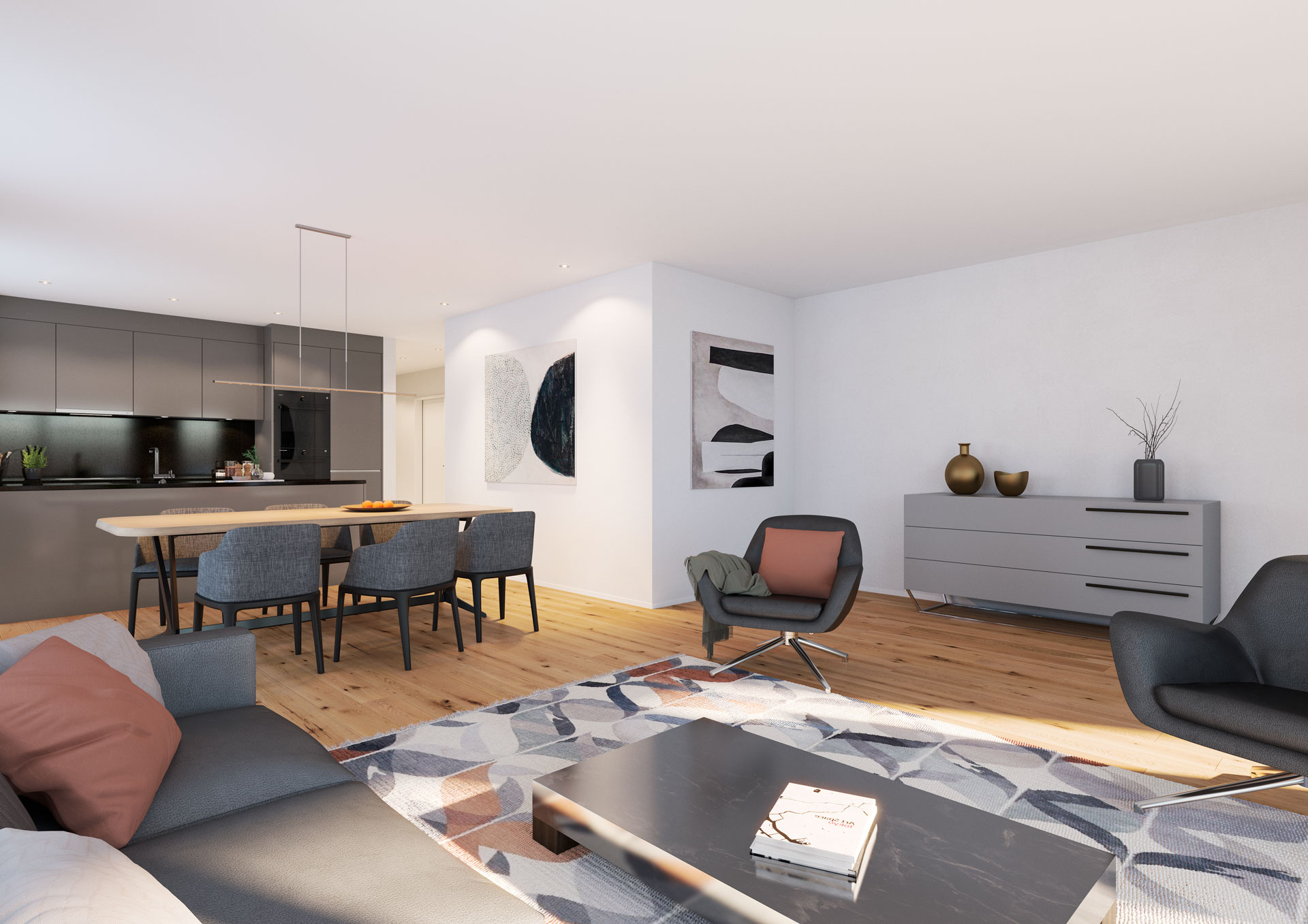 Drei Mehrfamilienhäuser mit 34 Eigentumswohnungen sowie Einstellhalle mit 51 Autoabstellplätze. Grosszügige moderne Wohnungen, alle Wohnungen mit Lift rollstuhlgängig erschlossen, überdeckte und grosszügige Balkone.